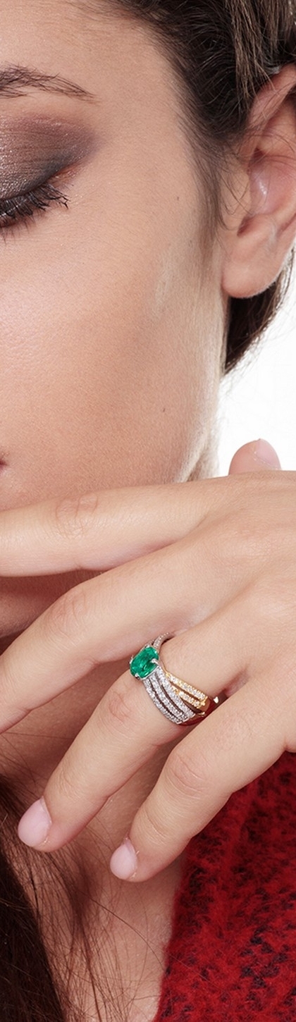 Anello in oro bianco e giallo 18k con smeraldo e diamanti