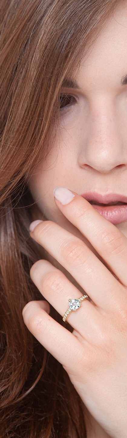 Anello in oro giallo 18k con Acquamarina a cuore e diamanti