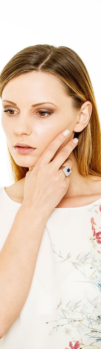 Anello modello quadro in Oro bianco 18k con Zaffiro blu e Diamanti