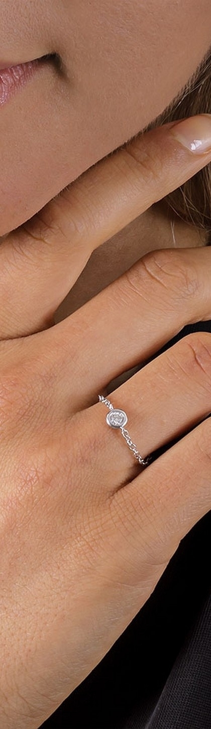 Anello in oro bianco 18k a maglia morbida con diamante ct 0,07