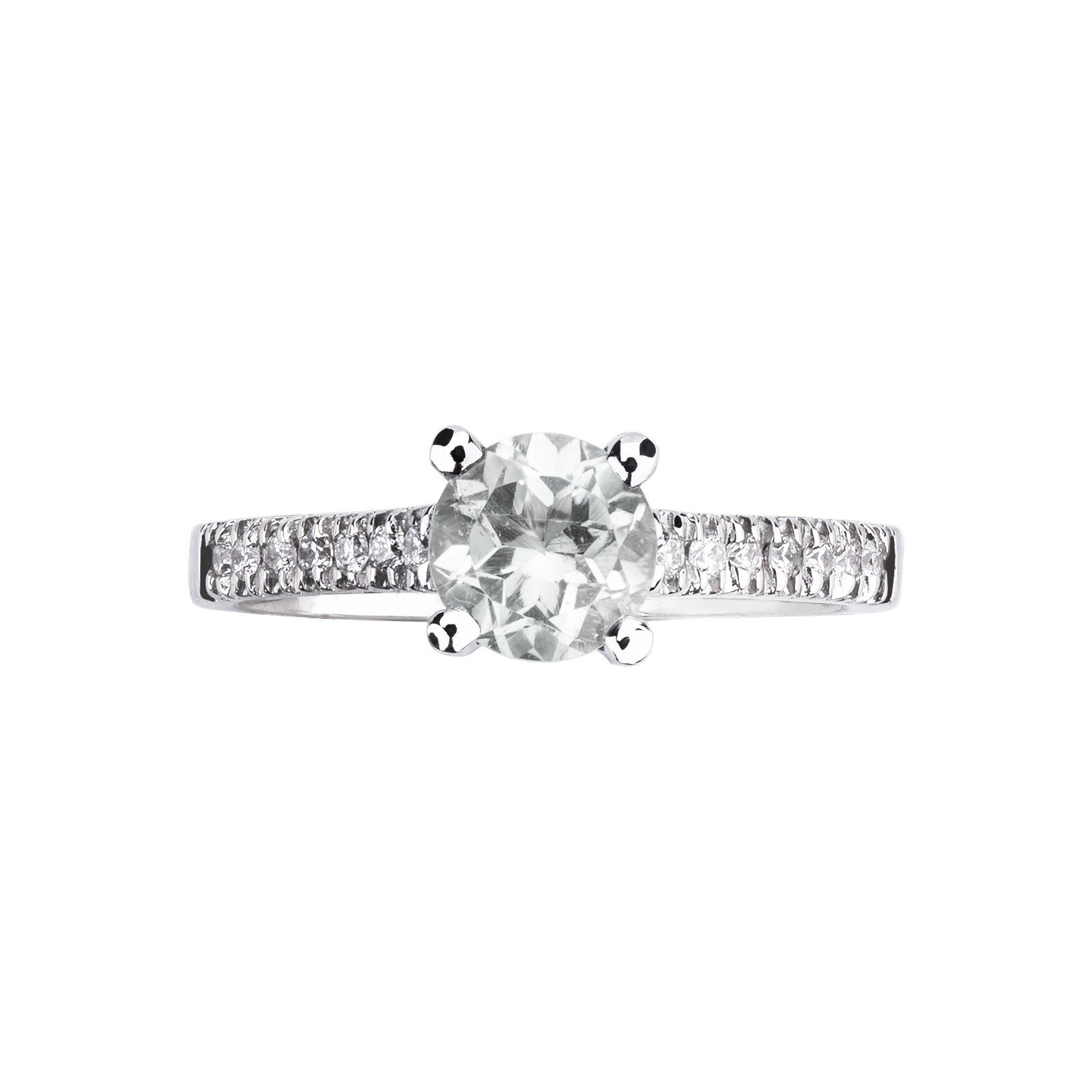Realizzato in oro bianco 18k, presenta un diamante centrale di 0,52ct, che è arricchito da altri diamanti posizionati sulla fascia dell'anello. Sono tutti incastonati a griffe a 4 punte, il che permette alla luce di colpire in modo ottimale le pietre preziose così da farne risaltare ancora di più la luminosità. Inoltre, i diamanti sono a taglio brillante con colore G e purezza VS che risulta essere una combinazione molto valida per qualità e brillantezza.