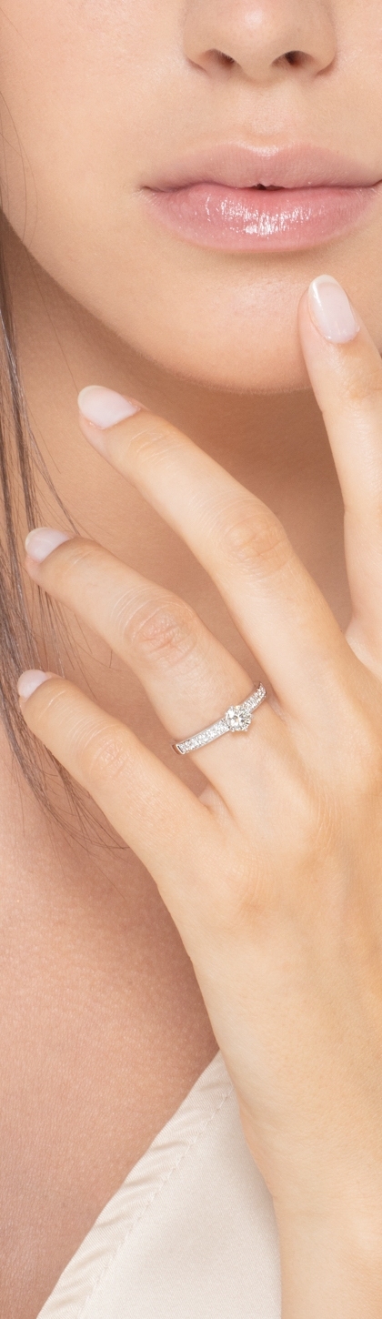 Anello in oro bianco 18k tipo solitario con diamanti, centrale 0.40 ct