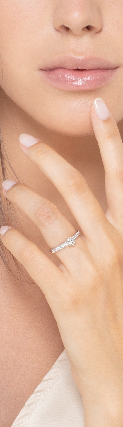 Anello in oro bianco 18k tipo solitario con diamanti, centrale 0.50 ct