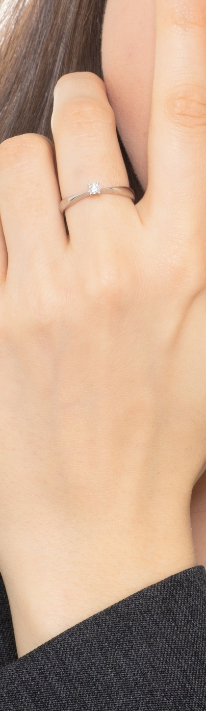 Anello modello solitario in oro bianco 18k con diamante, ct 0.10