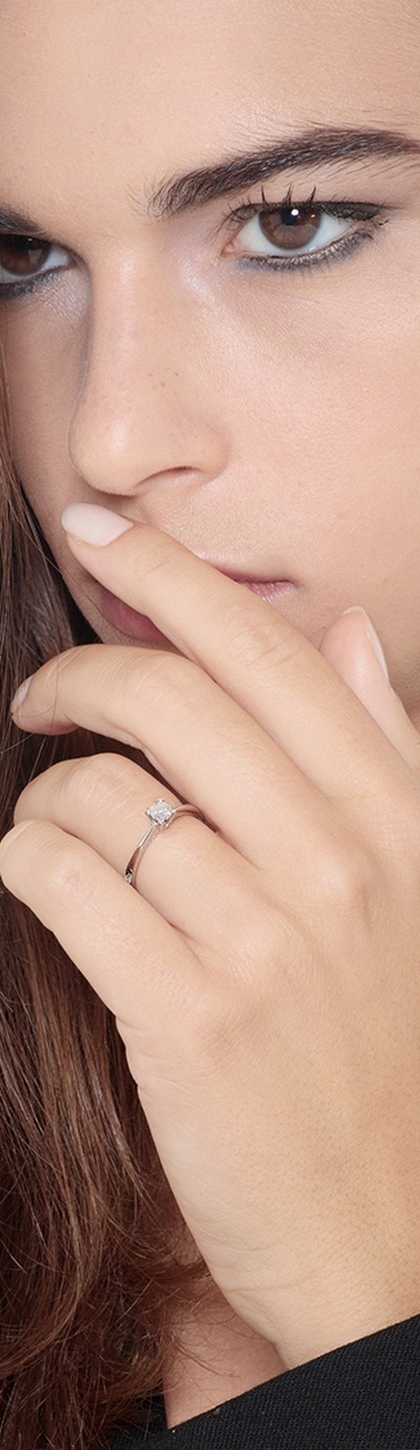 Anello Solitario a 4 griffe in oro bianco 18k con Diamante ct. 0,30