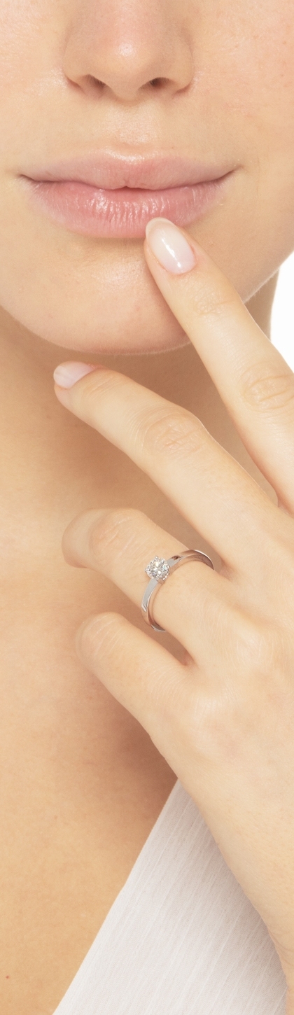 Anello solitario a 4 griffe in oro bianco 18k con diamante, ct. 0,50
