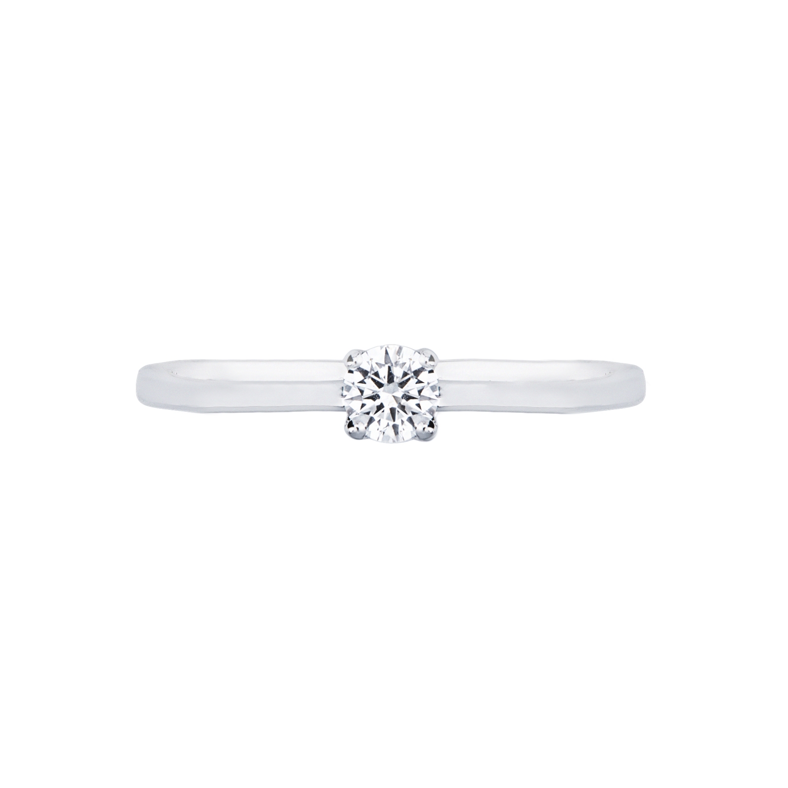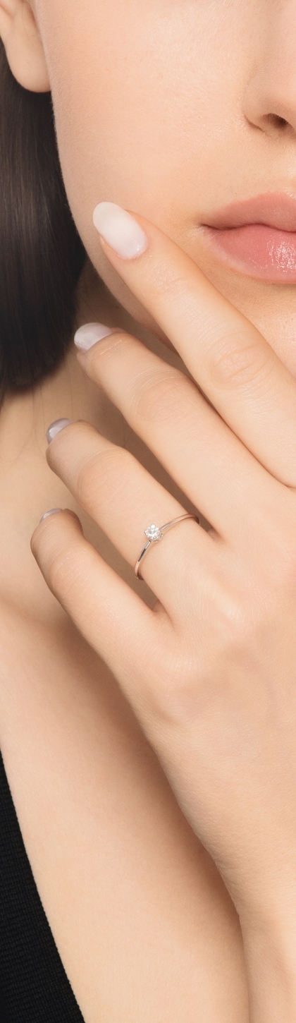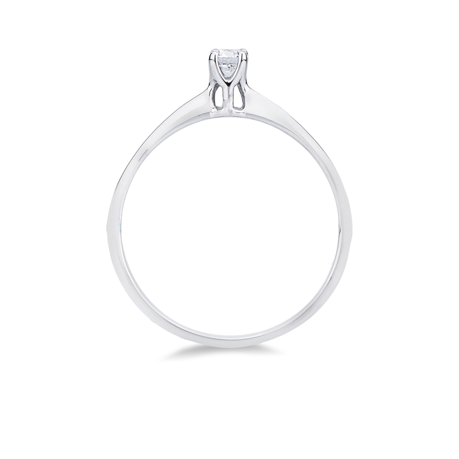 Anello solitario in oro bianco 18k a 4 griffe con diamante, ct. 0,10