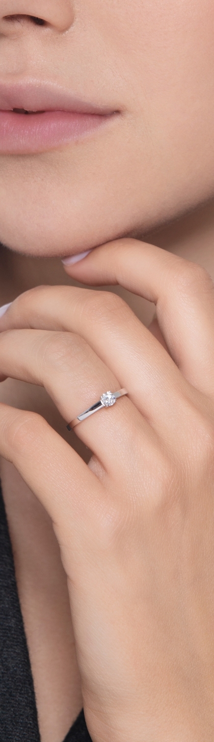 Anello solitario in oro bianco 18k con diamante 0.25 ct