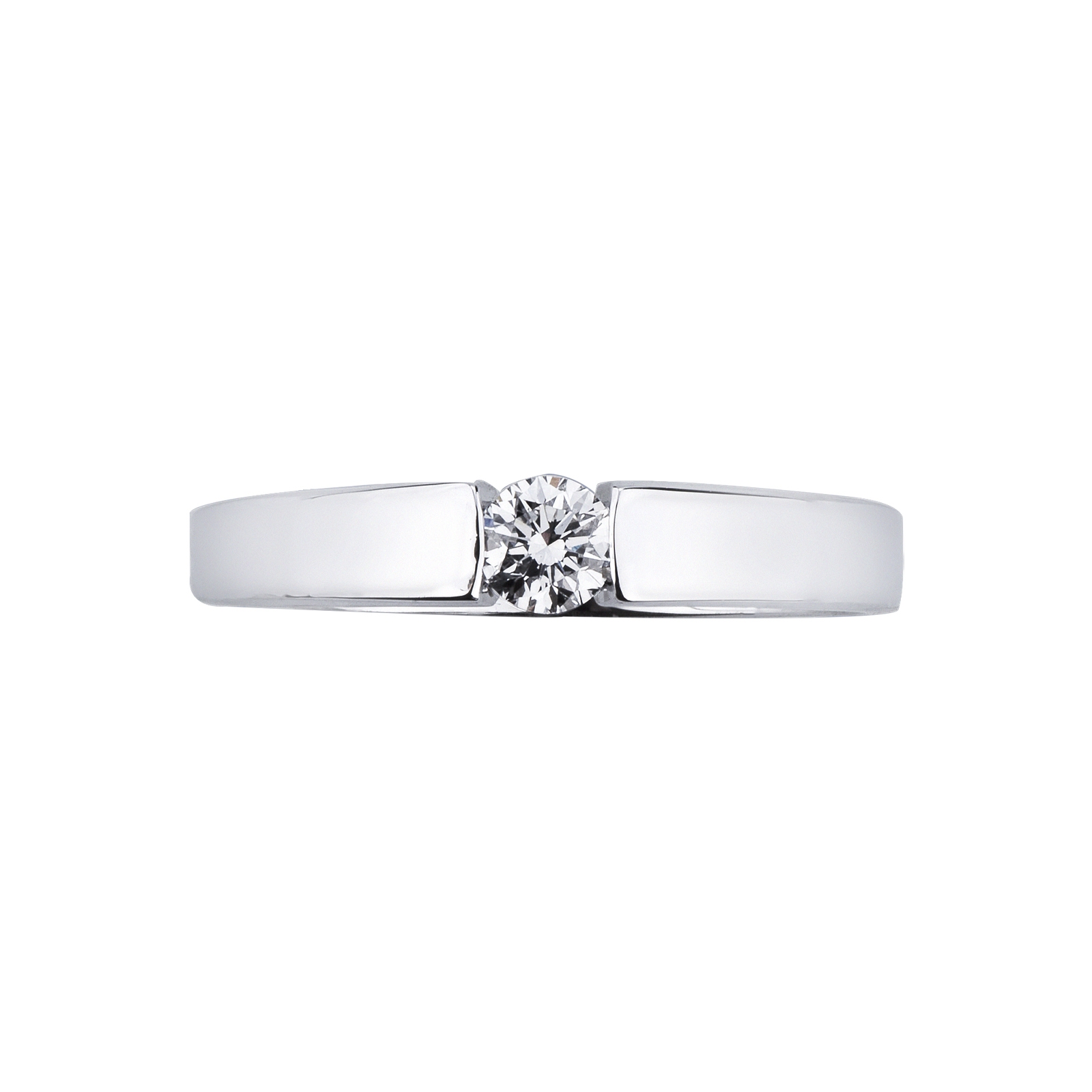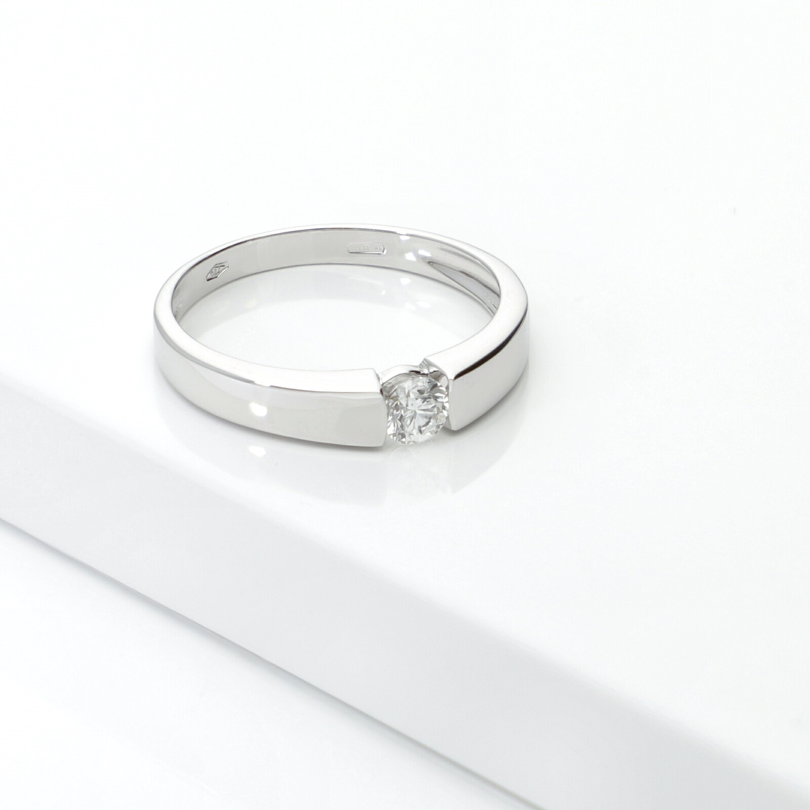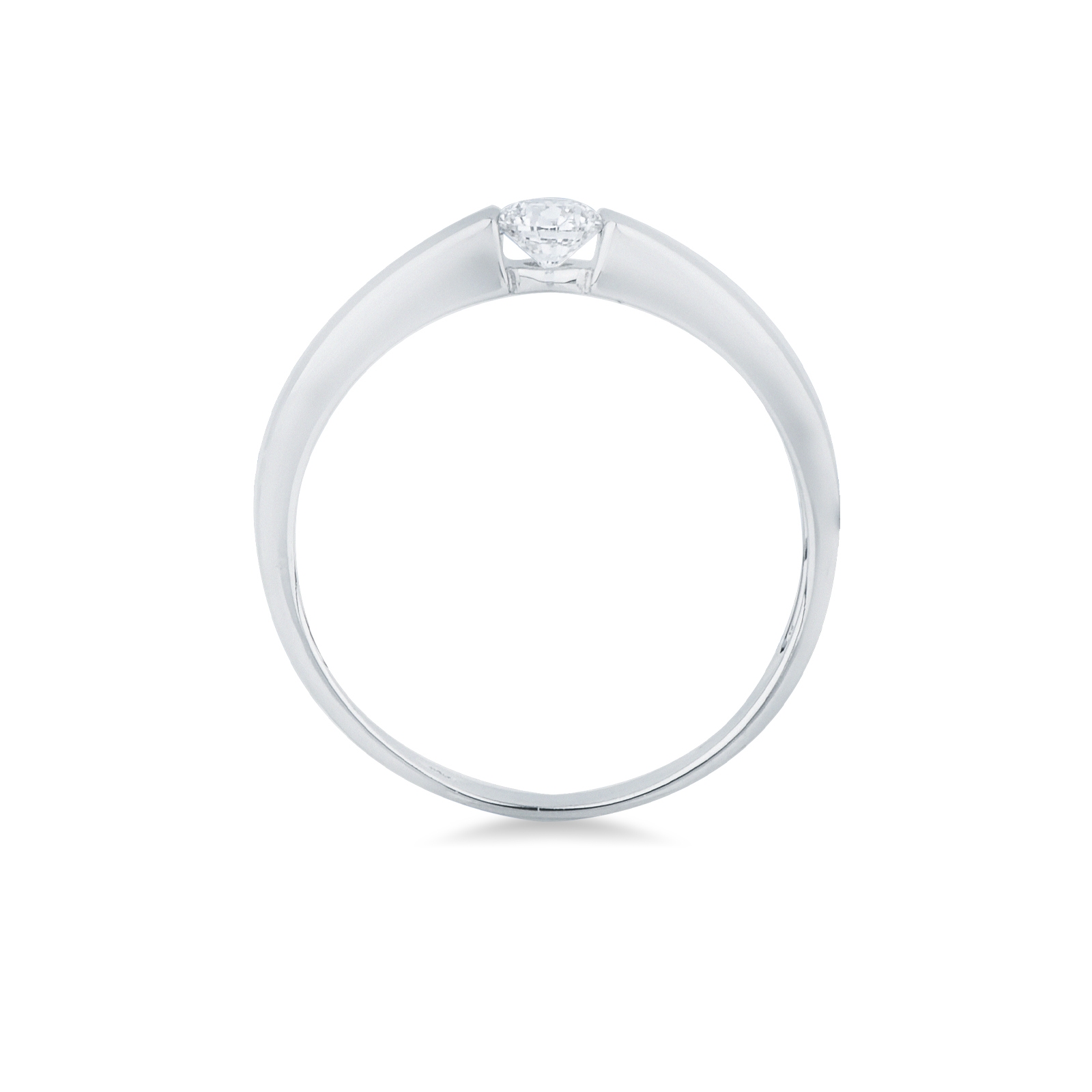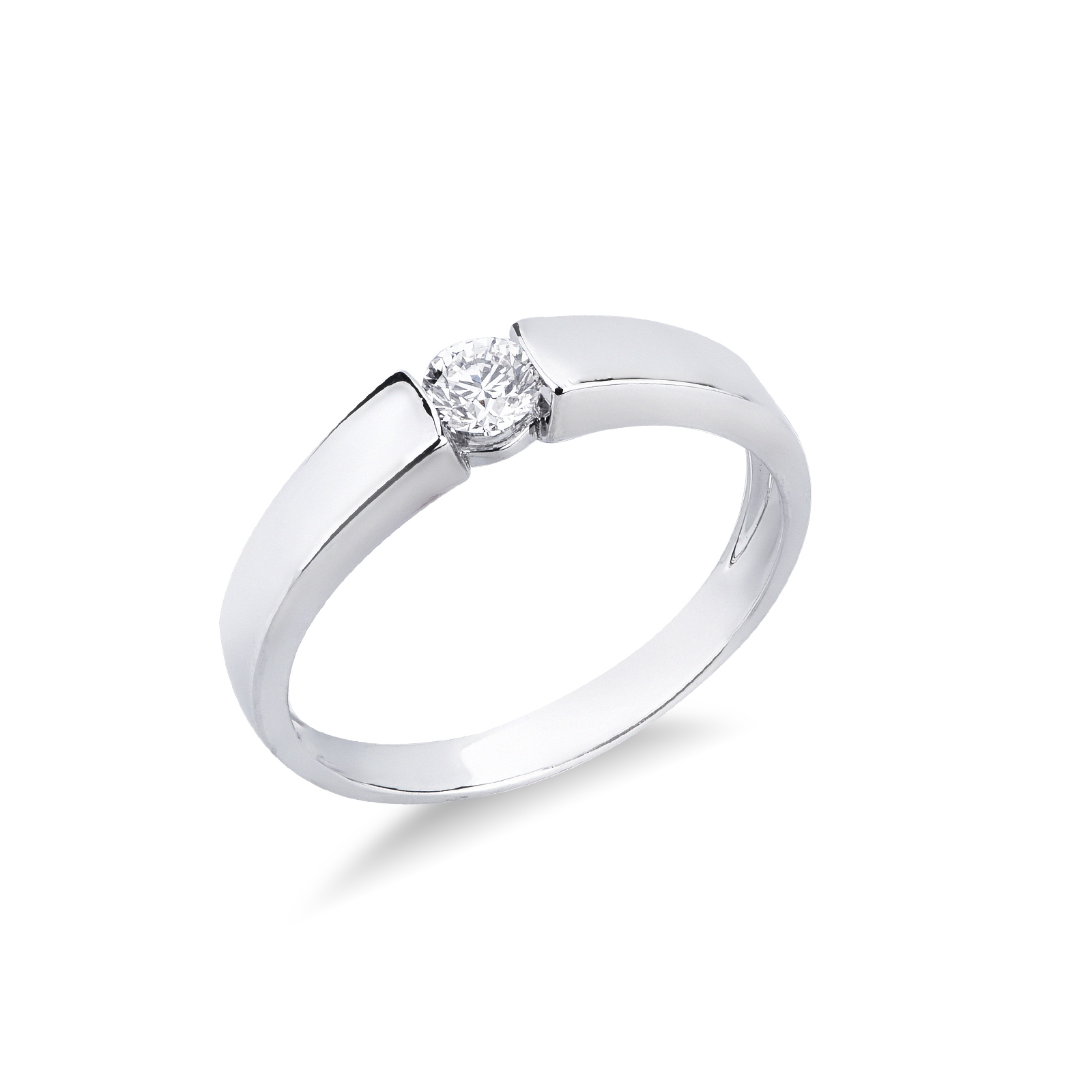 Anello solitario in oro bianco 18k con diamante da 0.20 ct. Incastonatura a battuto