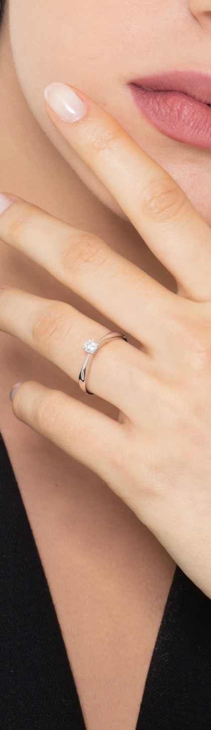 Anello solitario in oro bianco 18k con diamante da 0.25 ct