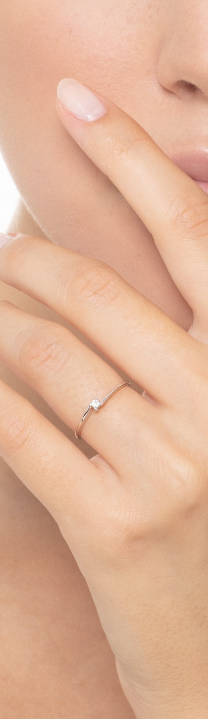 Anello solitario in oro bianco 18k modello Valentino con diamante di 0.04 ct