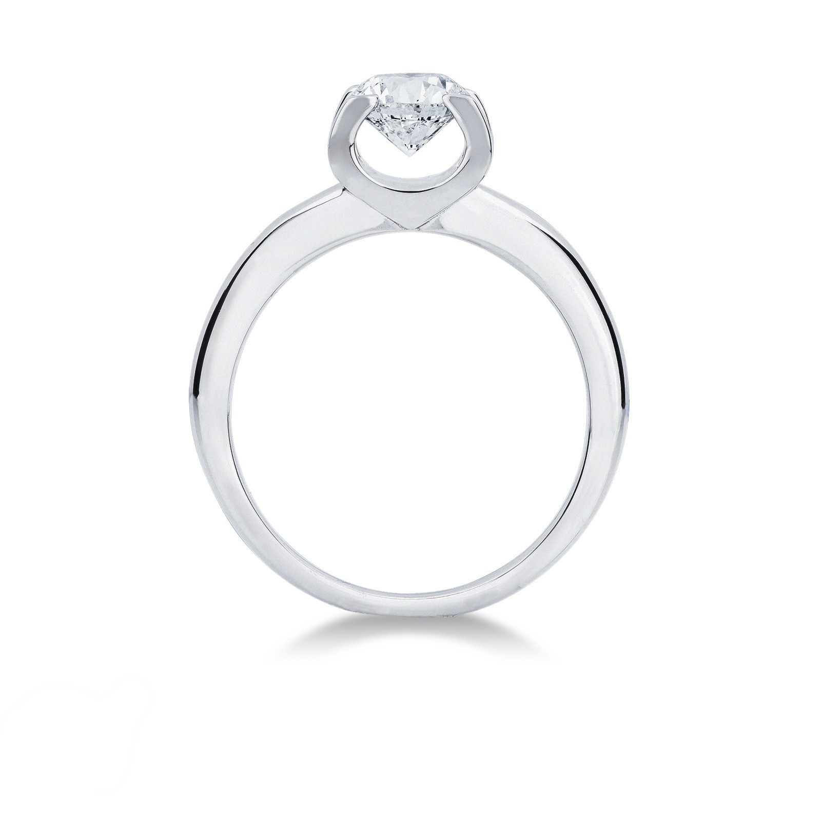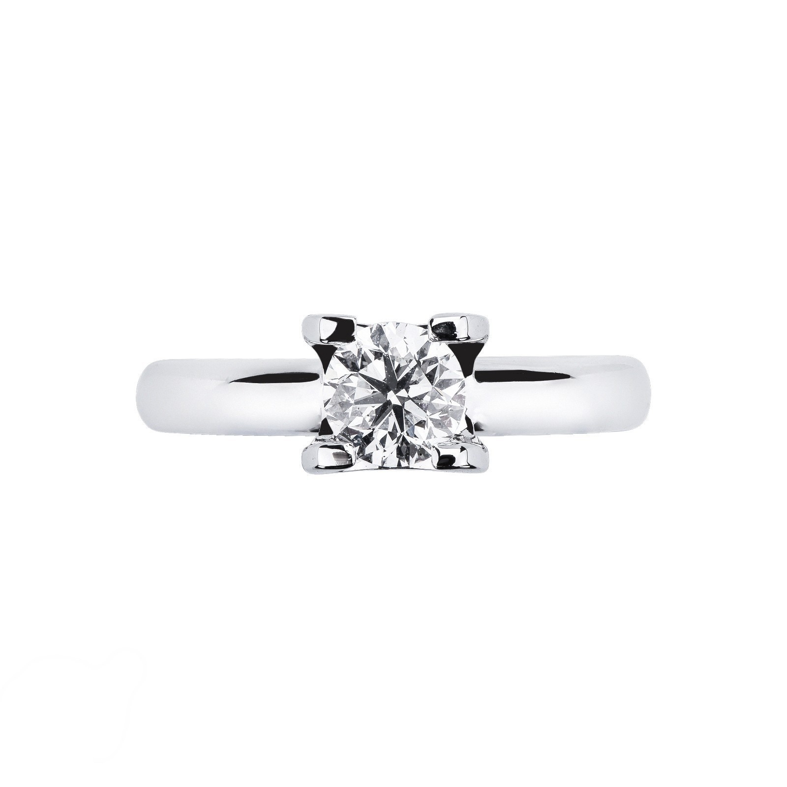 Anello solitario lineare a quattro griffe in oro bianco 18k con diamante taglio brillante colore G purezza VS 2.