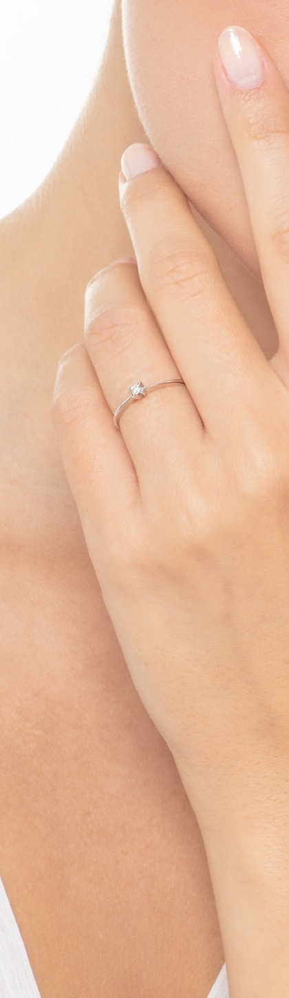 Anello solitario modello lineare in oro bianco 18k con diamante di 0.04 ct