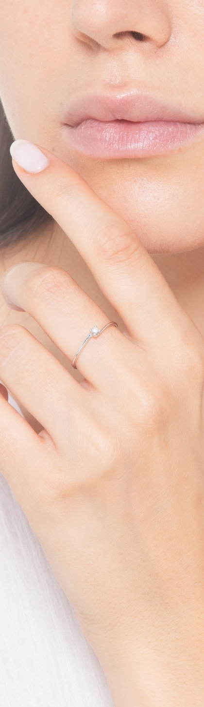 Anello solitario modello Valentino in oro bianco 18k con diamante di 0.04 ct