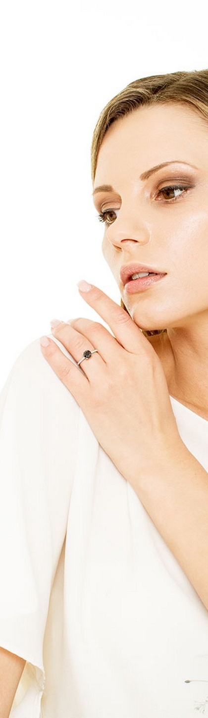 Anello tipo solitario in oro bianco 18k con diamante nero centrale