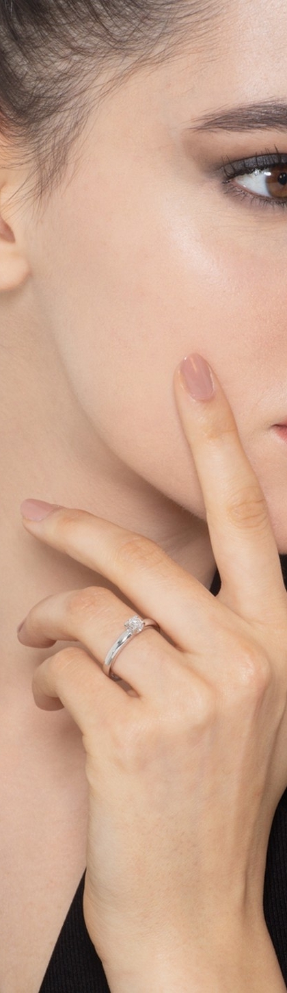 Solitario a 4 griffe in oro bianco 18k con Diamante ct. 0,15