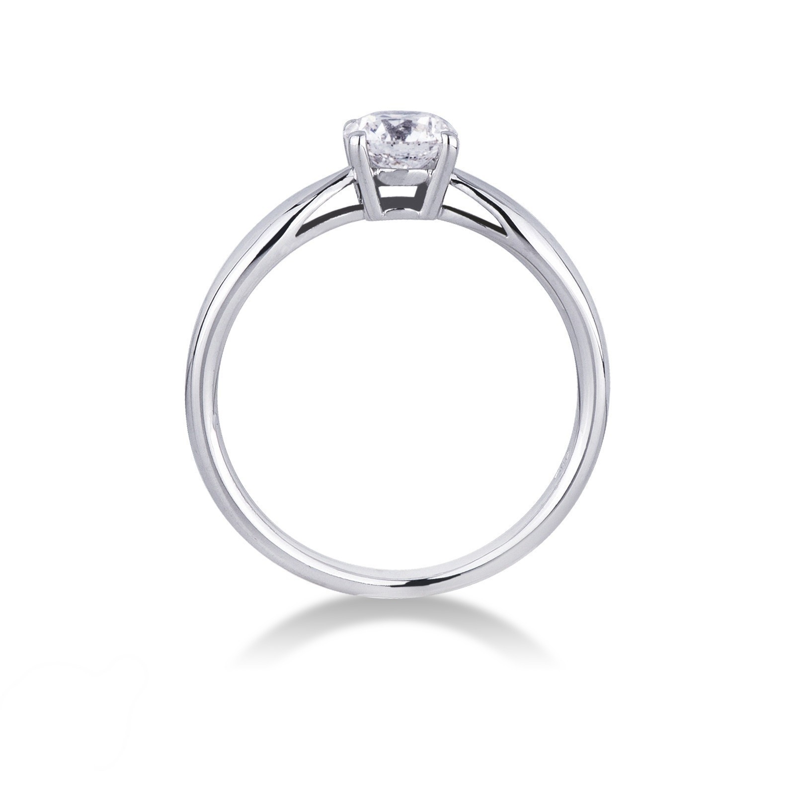 Anello da Donna Solitario griffe a quattro punte con gambo bombato, in Oro Bianco 18k, con incastonato diamante colore G purezza Vs taglio brillante.
