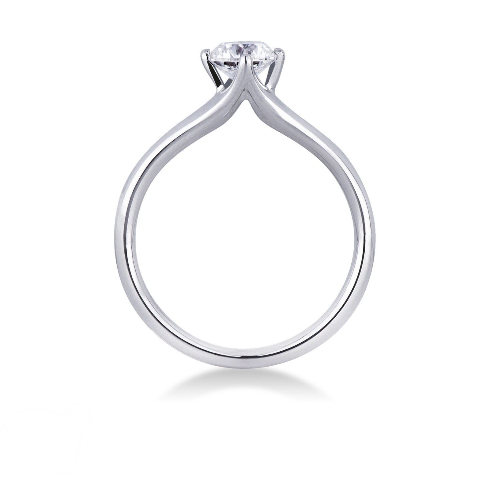 Anello Solitario griffe a quattro punte con gambo lineare con rombo ai lati, in Oro bianco 18k, con incastonato diamante colore G purezza Vs taglio brillante.