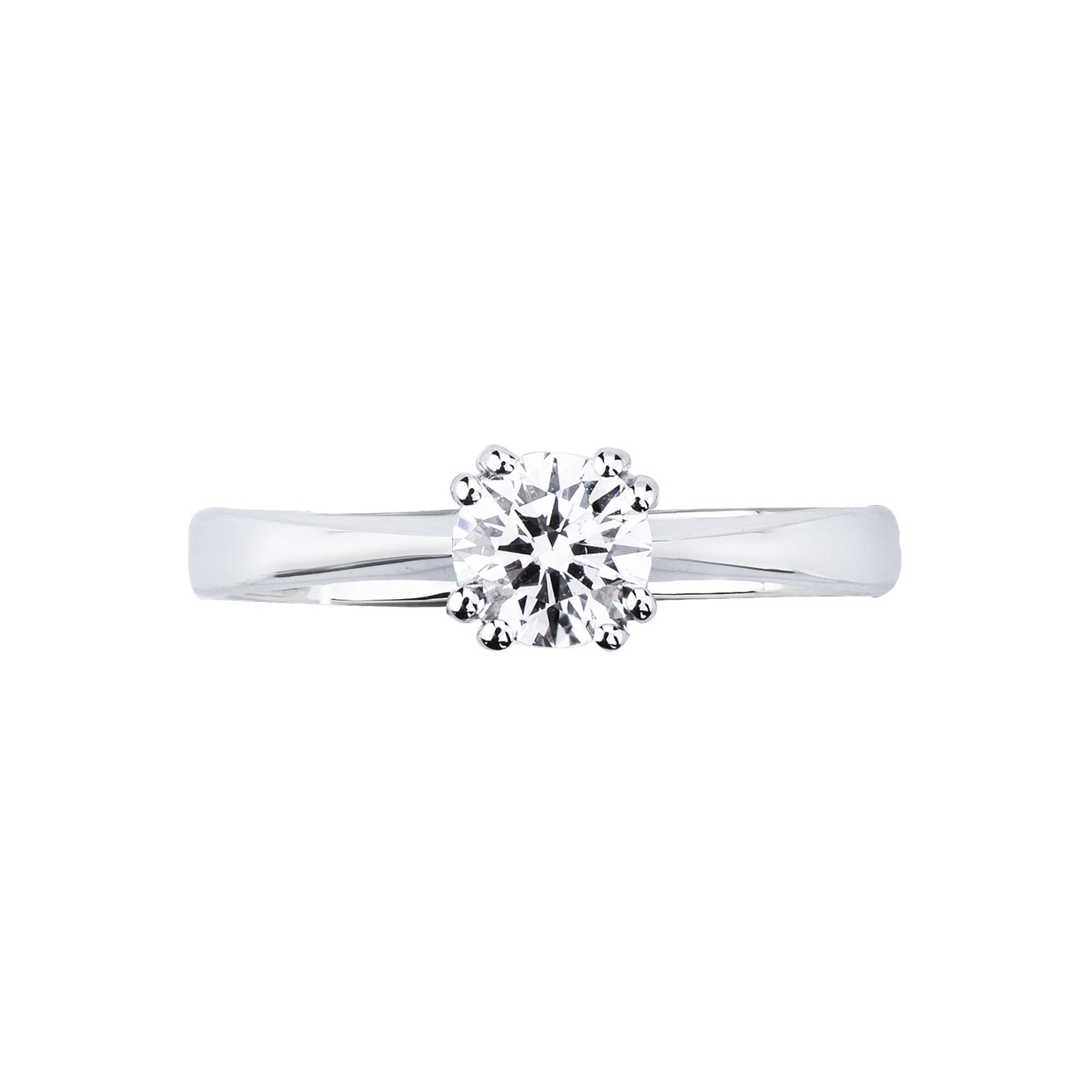 Solitario a 8 griffe lineare in oro bianco 18k con diamante, 0,70 ct