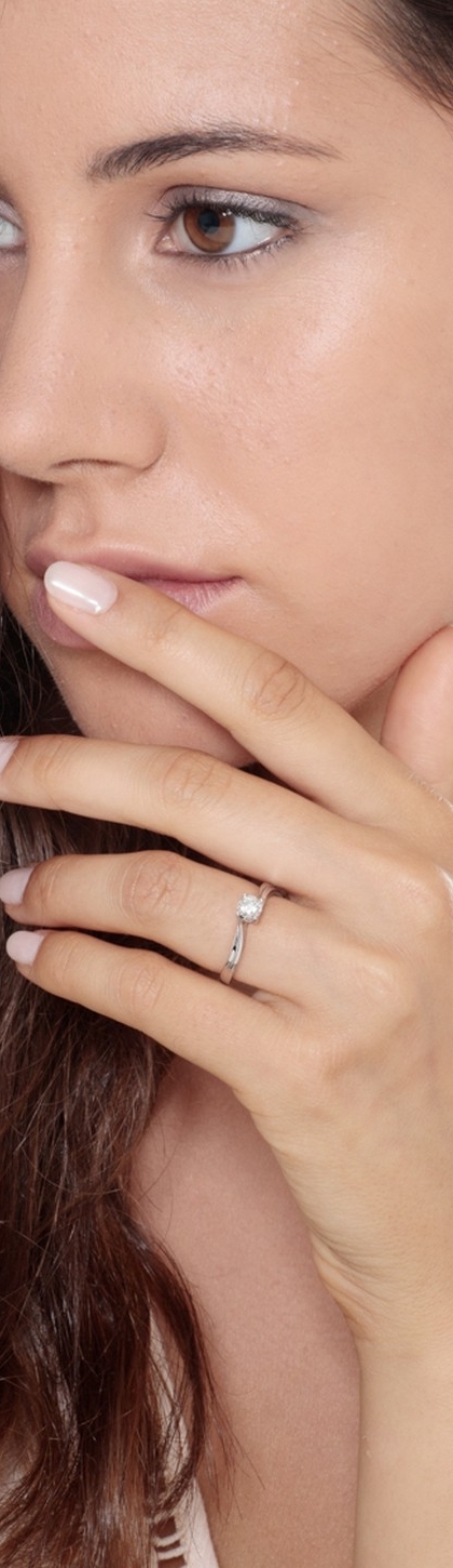 Solitario griffe a 4 griffe in oro bianco 18k con Diamante ct 0.40