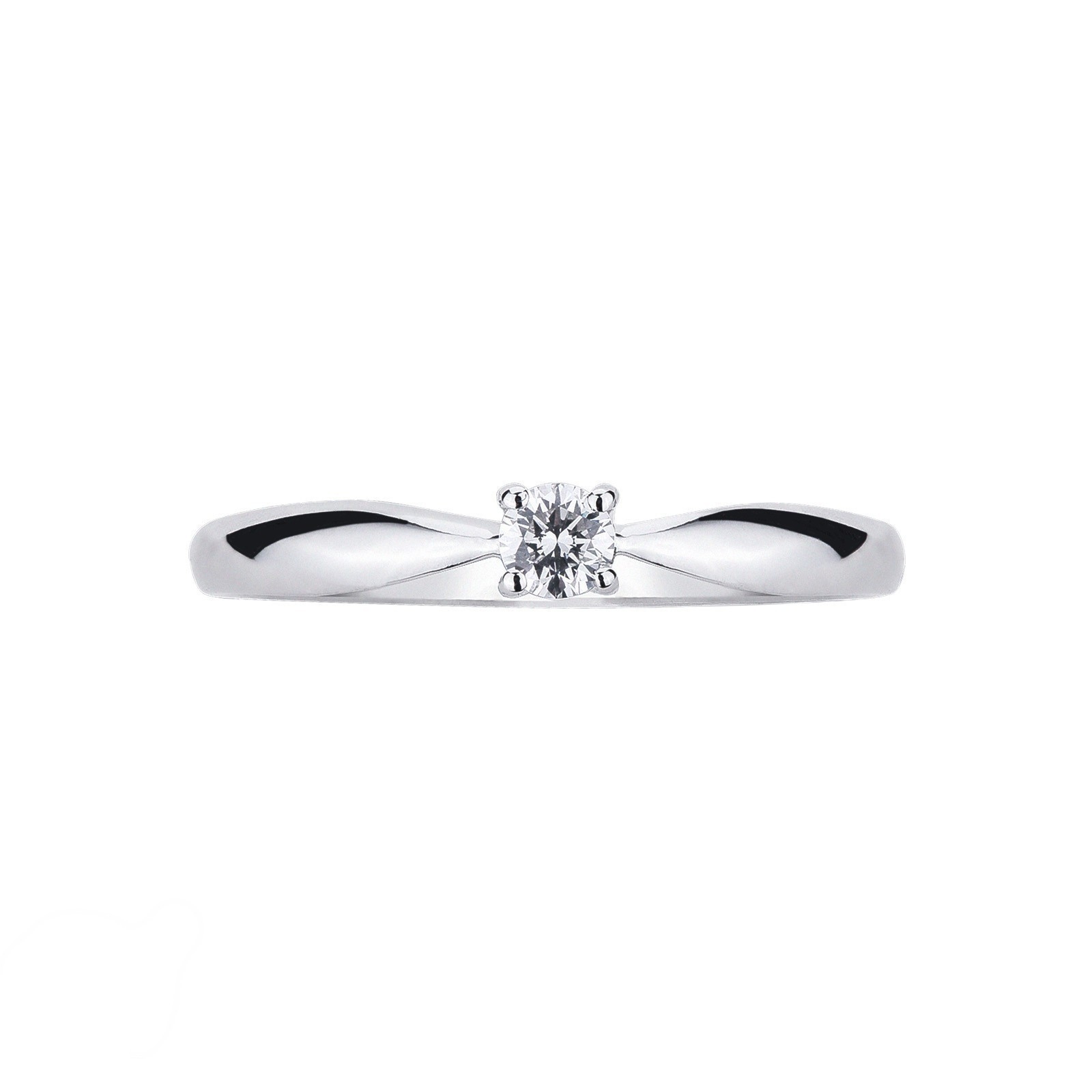 Solitario griffe a 4 punte in oro bianco 18k con Diamante taglio brillante ct. 0,15.