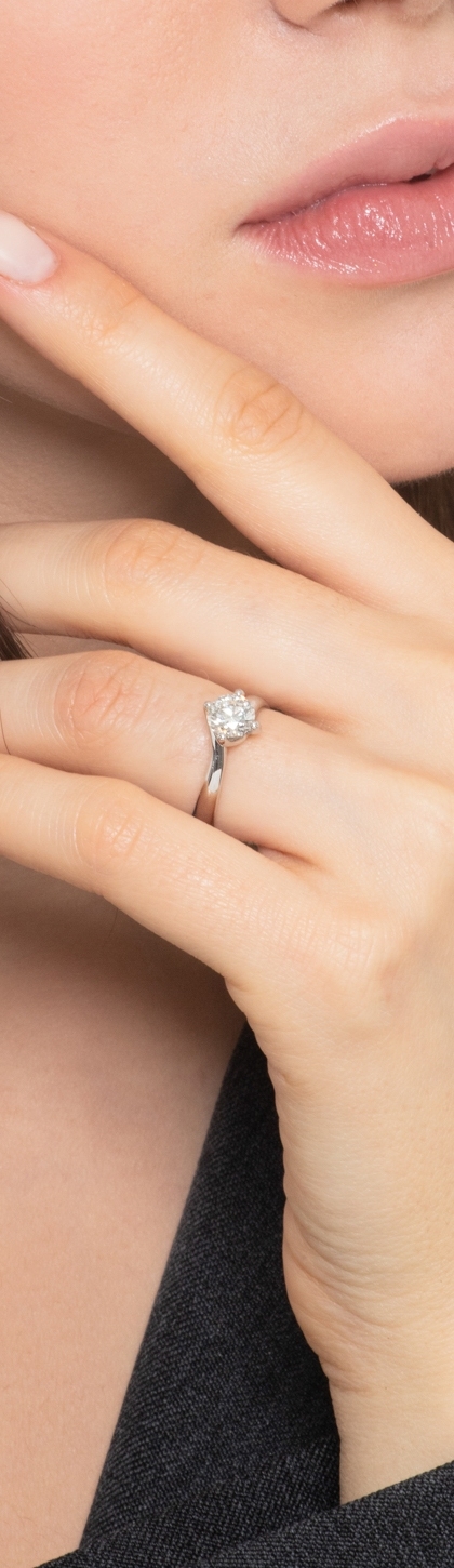 Solitario griffe a quattro punte in oro bianco 18k con Diamante ct. 0,90