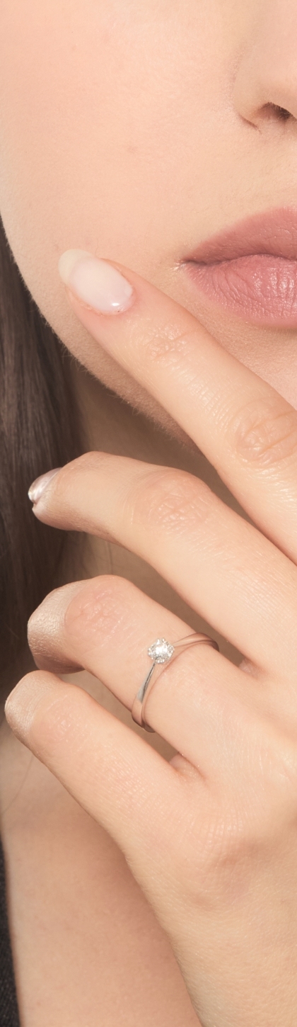 Solitario in oro bianco 18k a 8 griffe con diamante, 0,25 ct