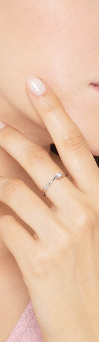 Solitario in Oro bianco 18k con diamante di 0.15 ct