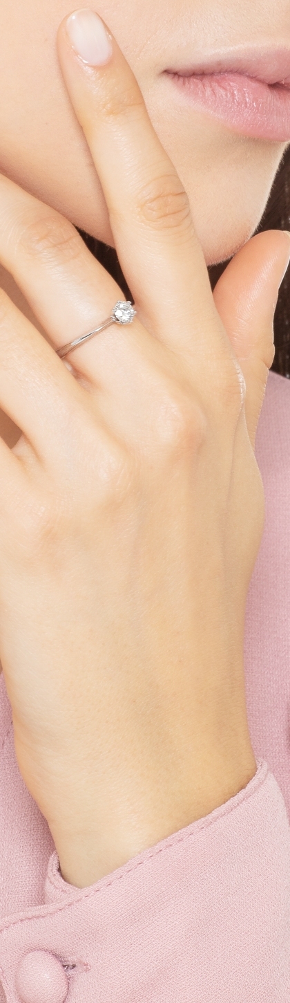 Solitario a sei punte in oro bianco 18k con diamante di 0.40 ct, colore G e purezza Vs.