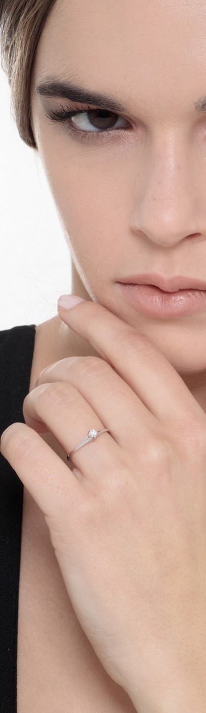 Solitario lineare rombo in oro bianco 18k con Diamante ct. 0,10