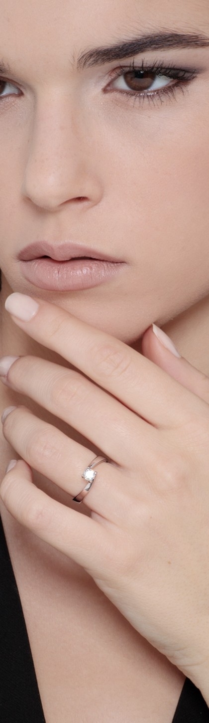 Solitario modello a 4 punte in oro bianco 18k con Diamante ct. 0,30