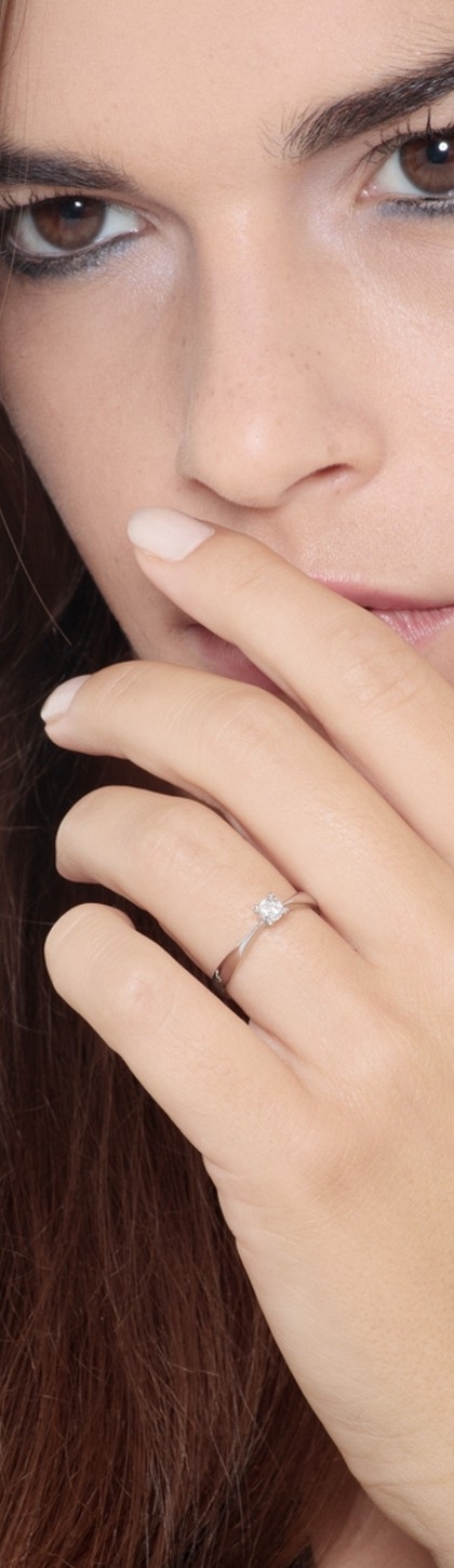 Solitario modello griffe a 4 punte in oro bianco 18k con Diamante di ct. 0,20
