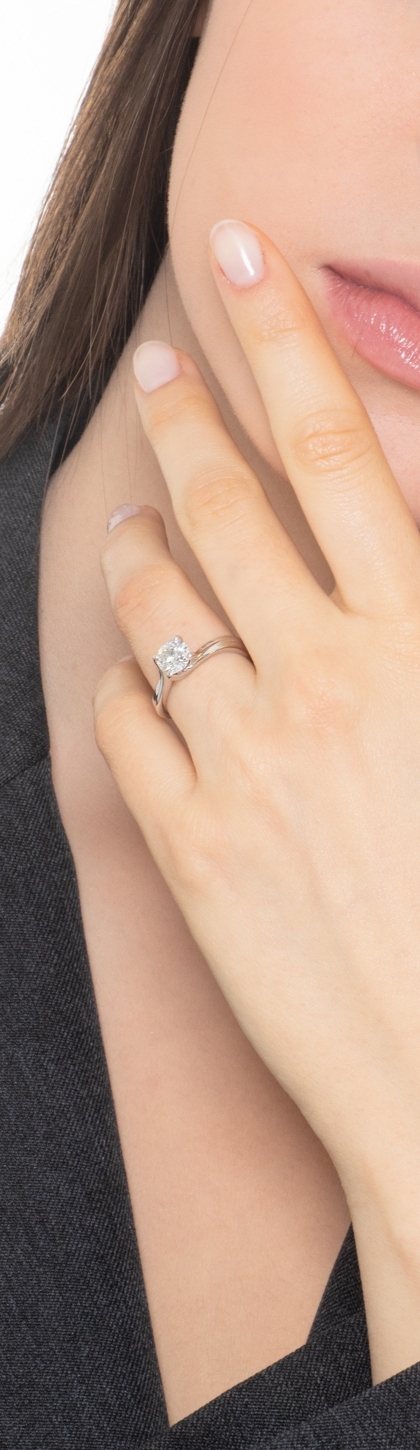 Solitario modello Valentino a quattro griffe in Oro bianco 18k con diamante di 1.00 ct