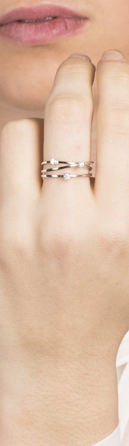 White gold 18k crossover trilogy ring with diamonds