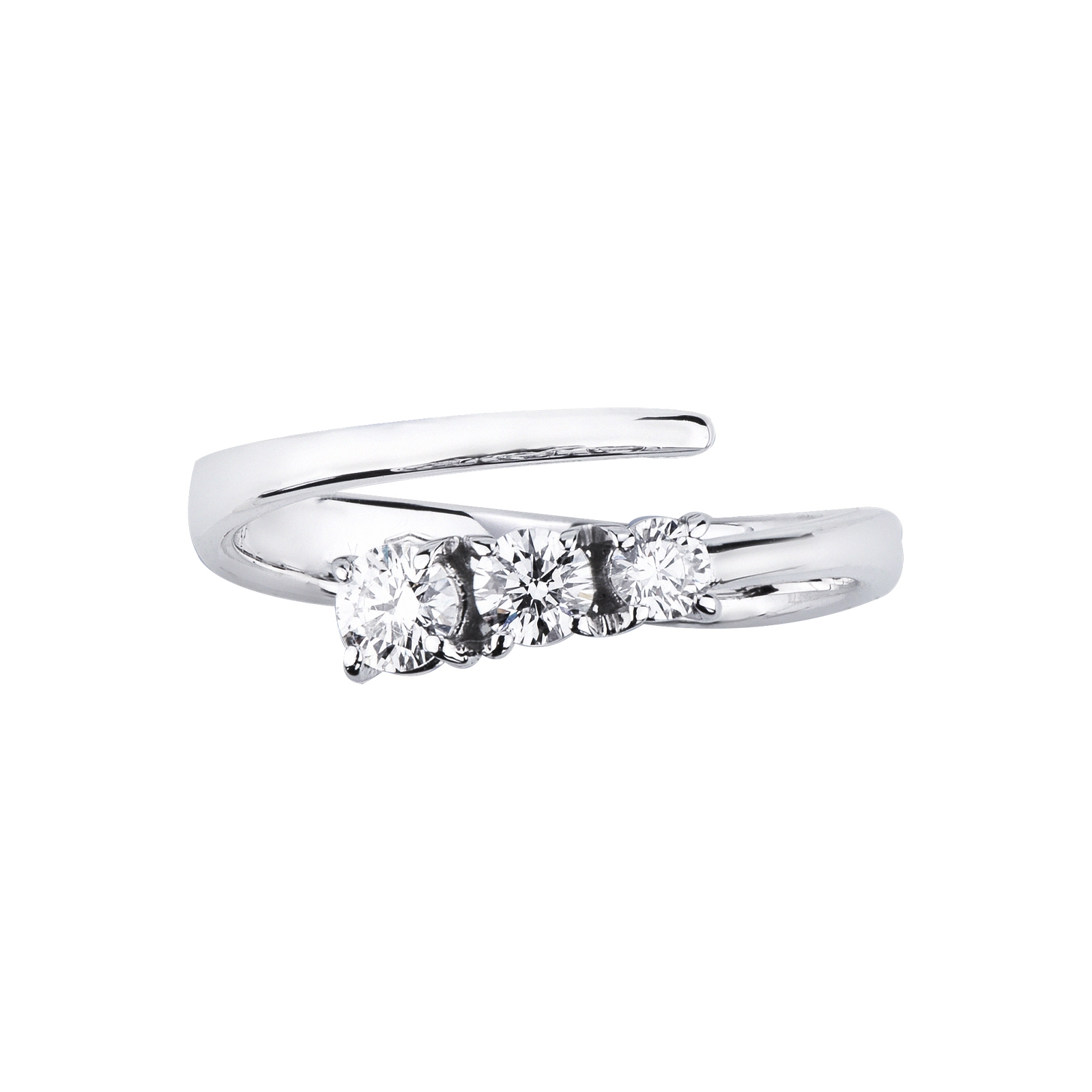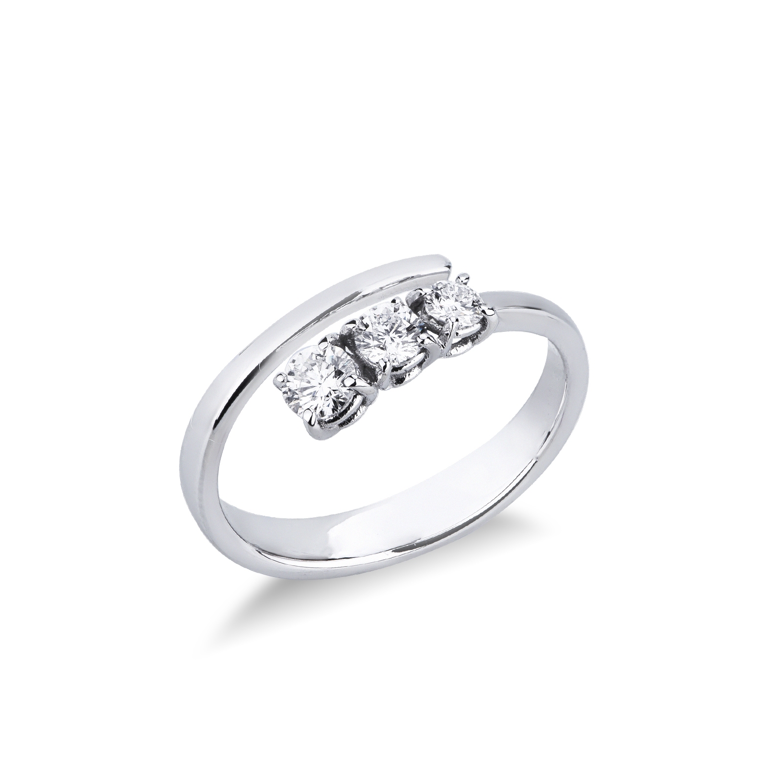 Anello contrarié in oro bianco 18k con 3 diamanti a scalare