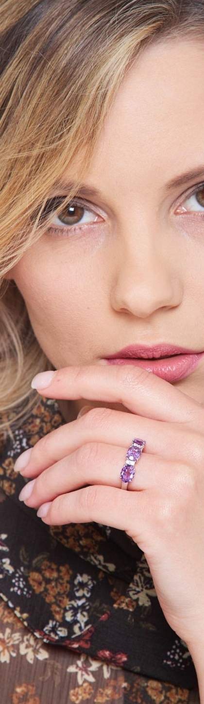 Anello in oro bianco 18k con diamanti e ametiste