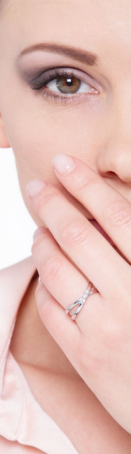 Anello in oro bianco 18k incrociato con trilogy di diamanti