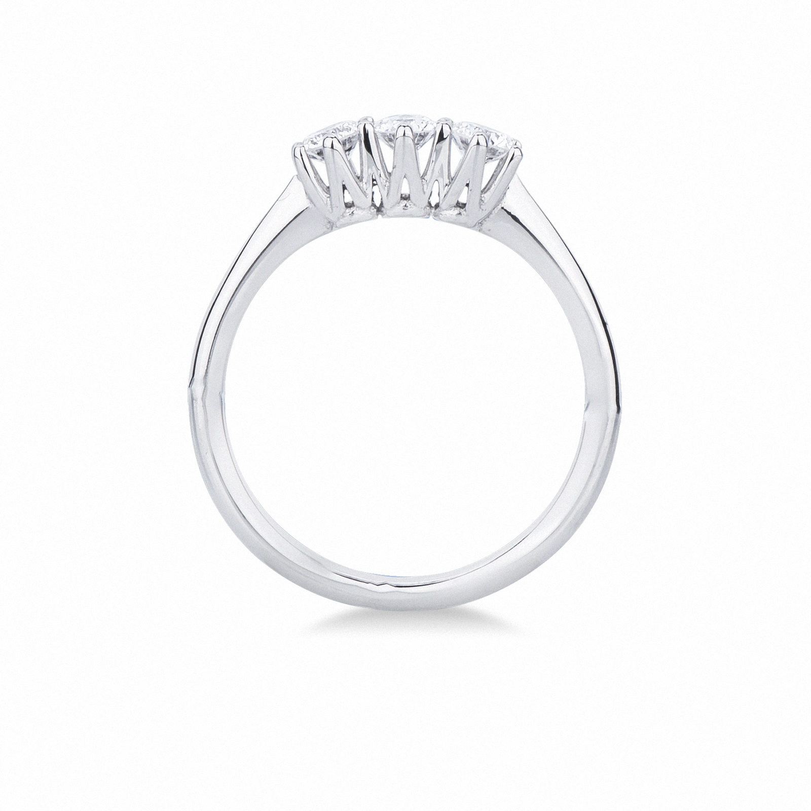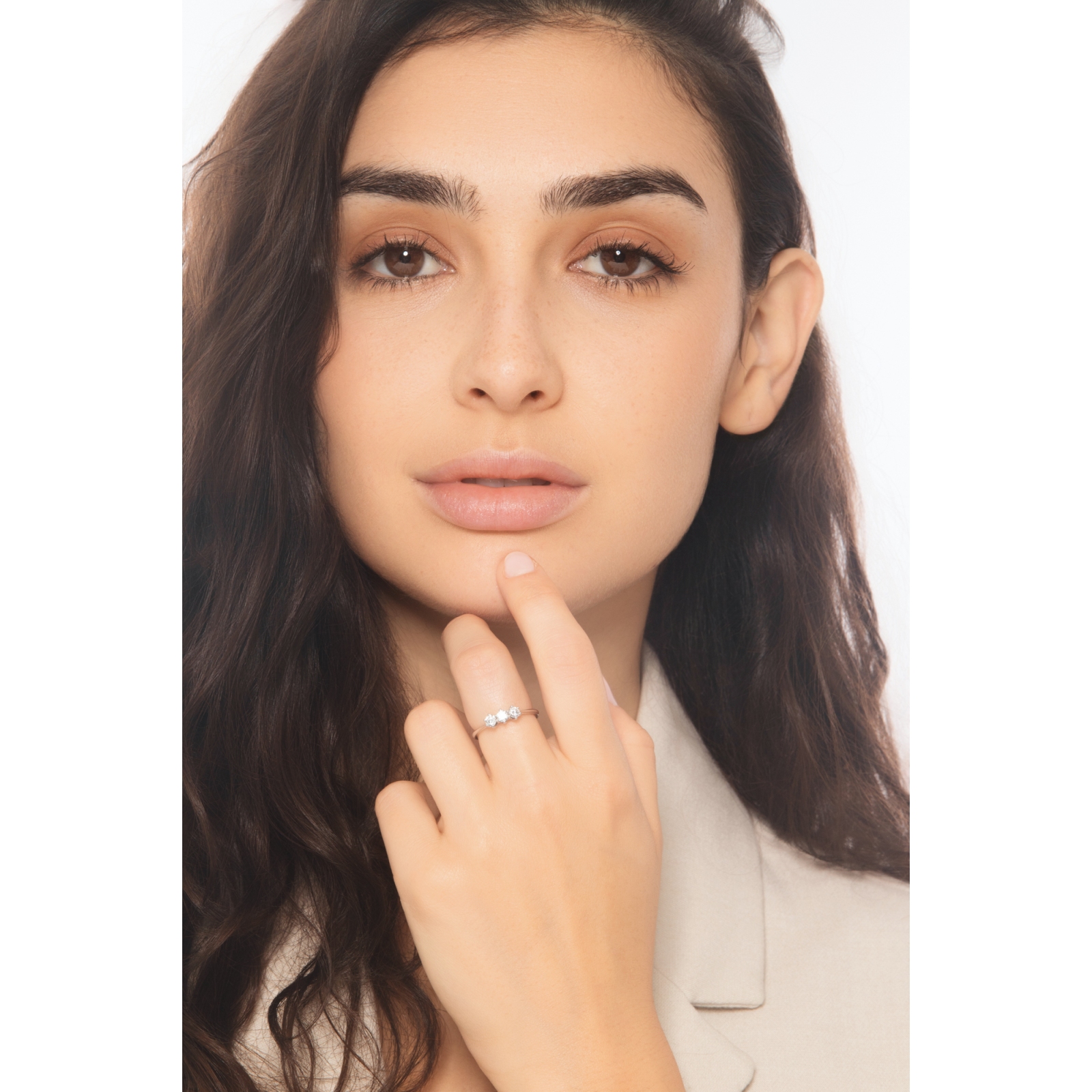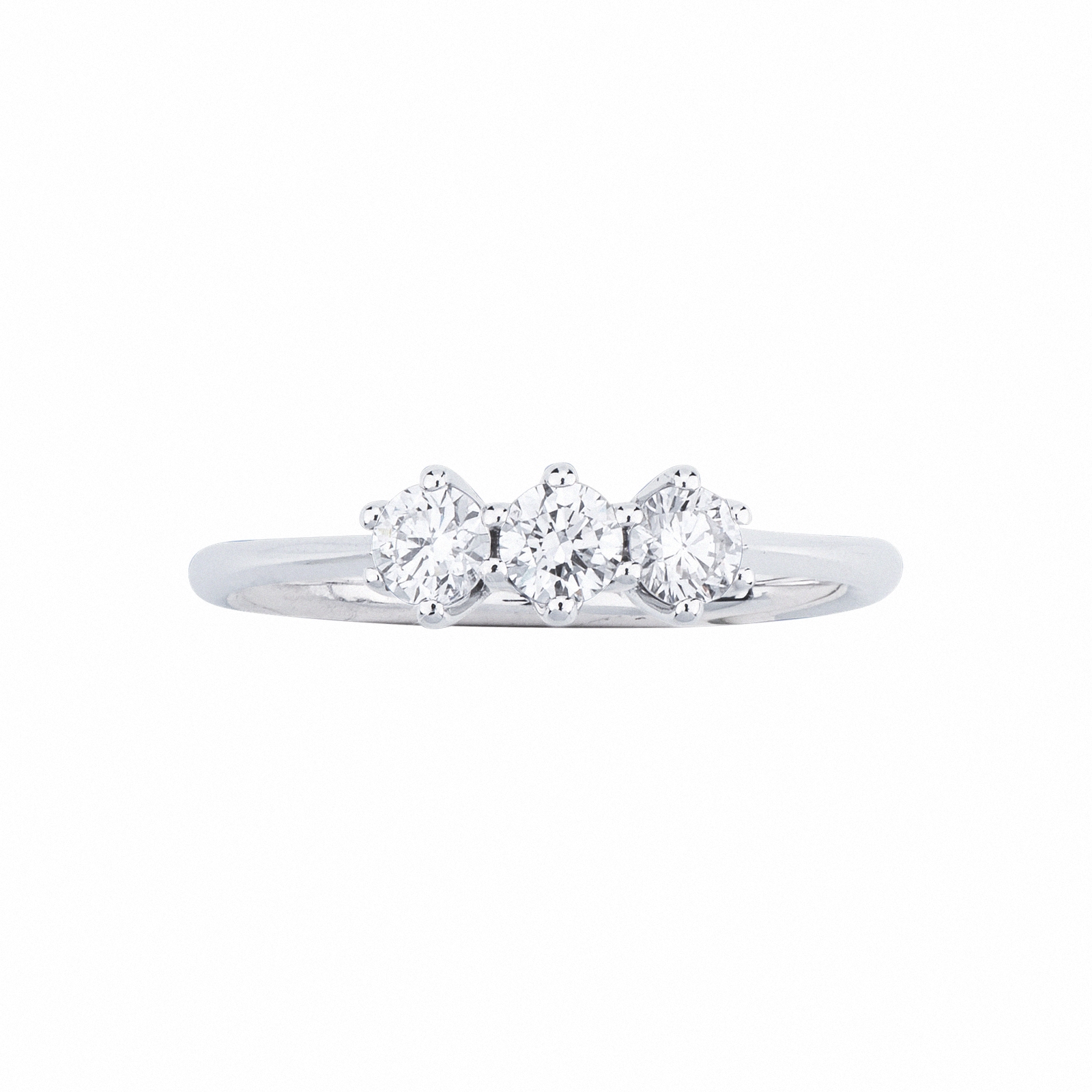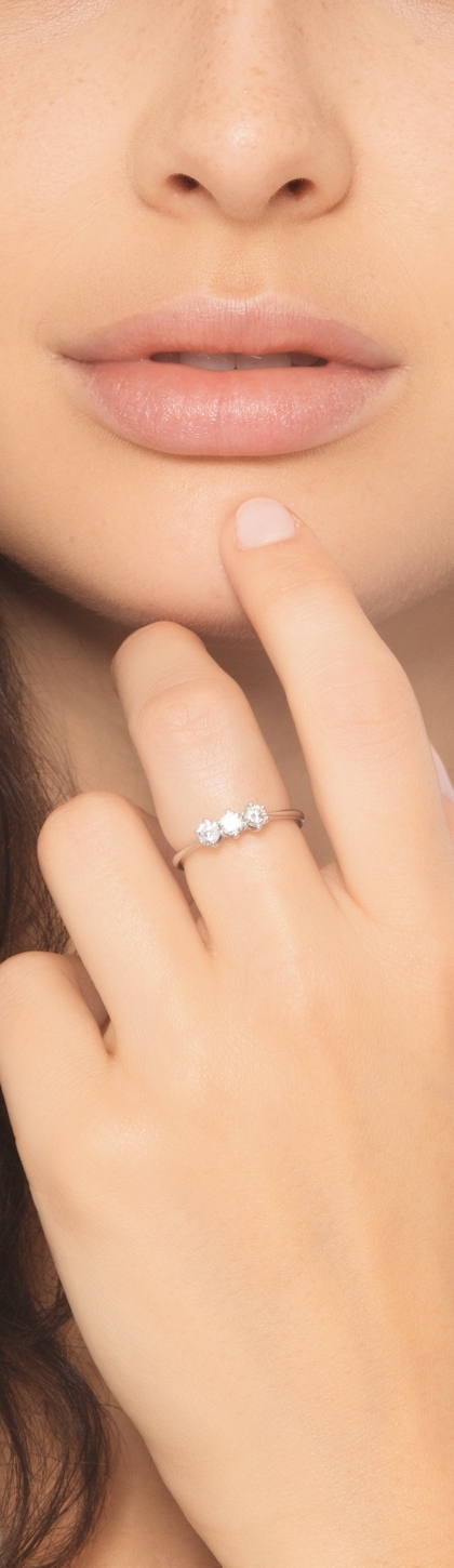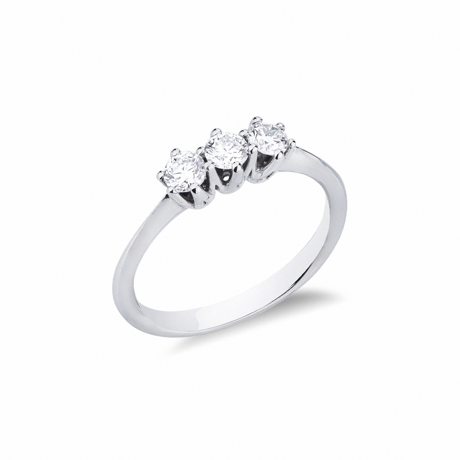 Anelli trilogy in oro bianco 18k con tre diamanti taglio brillante, colore G e purezza Vs.
