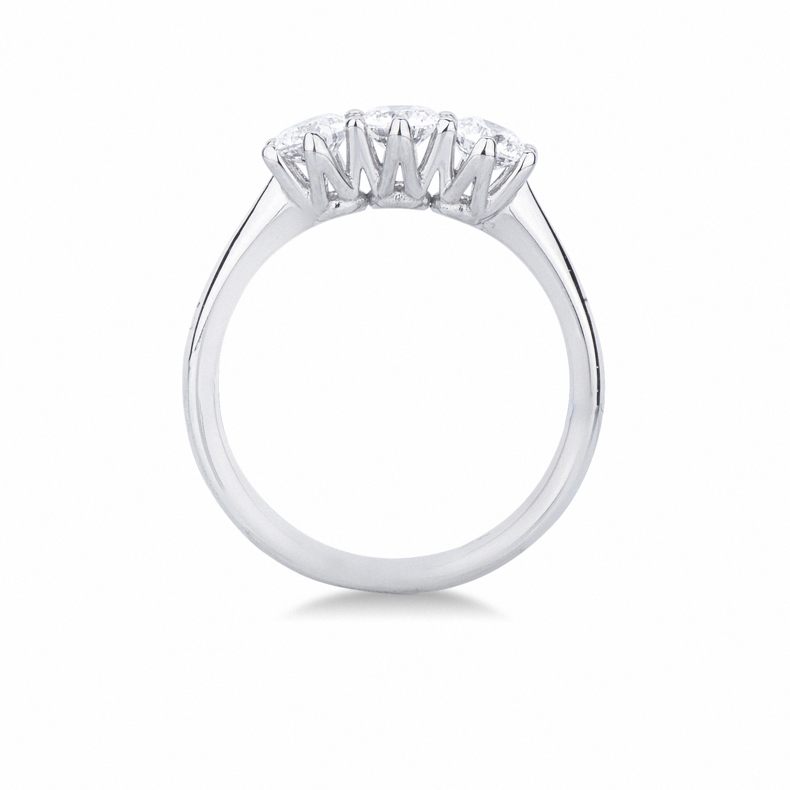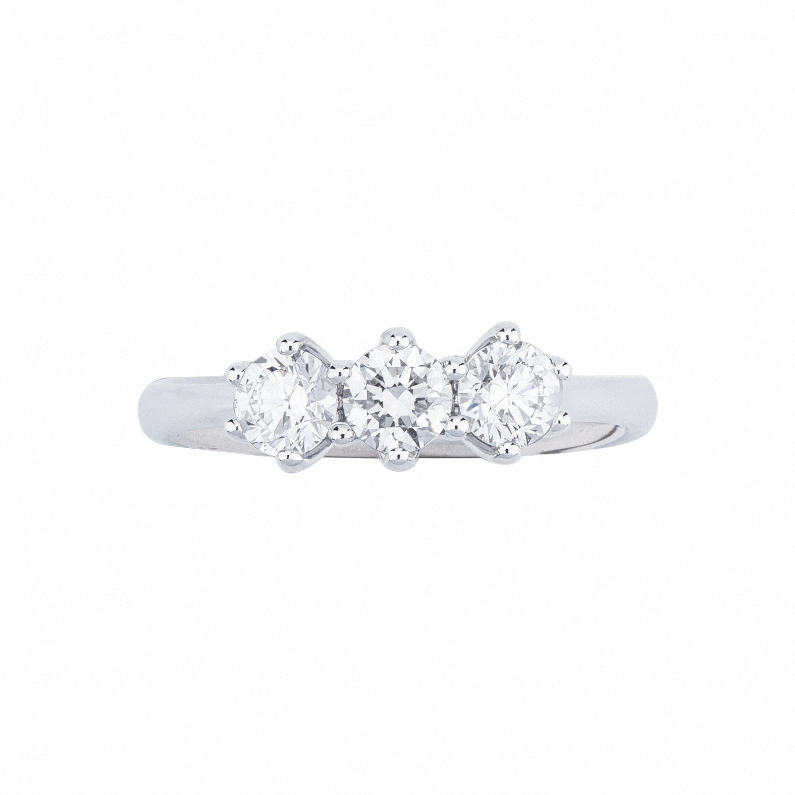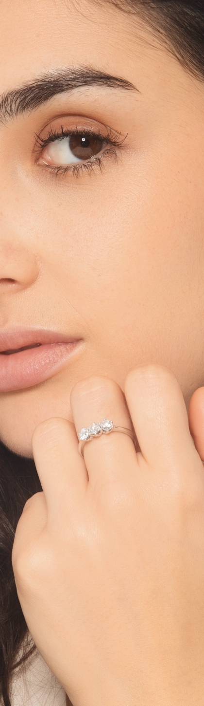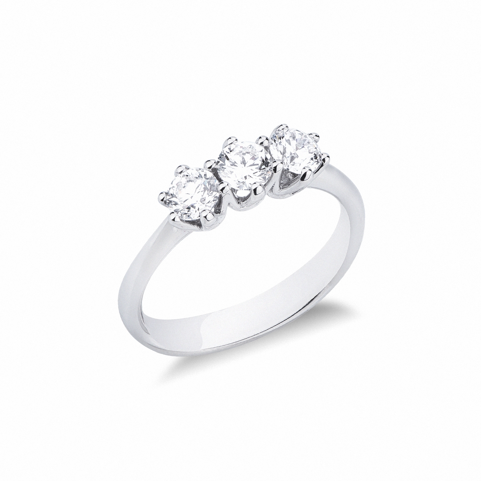 Anello trilogy in oro bianco 18k con diamanti taglio brillante, colore G e purezza Vs.