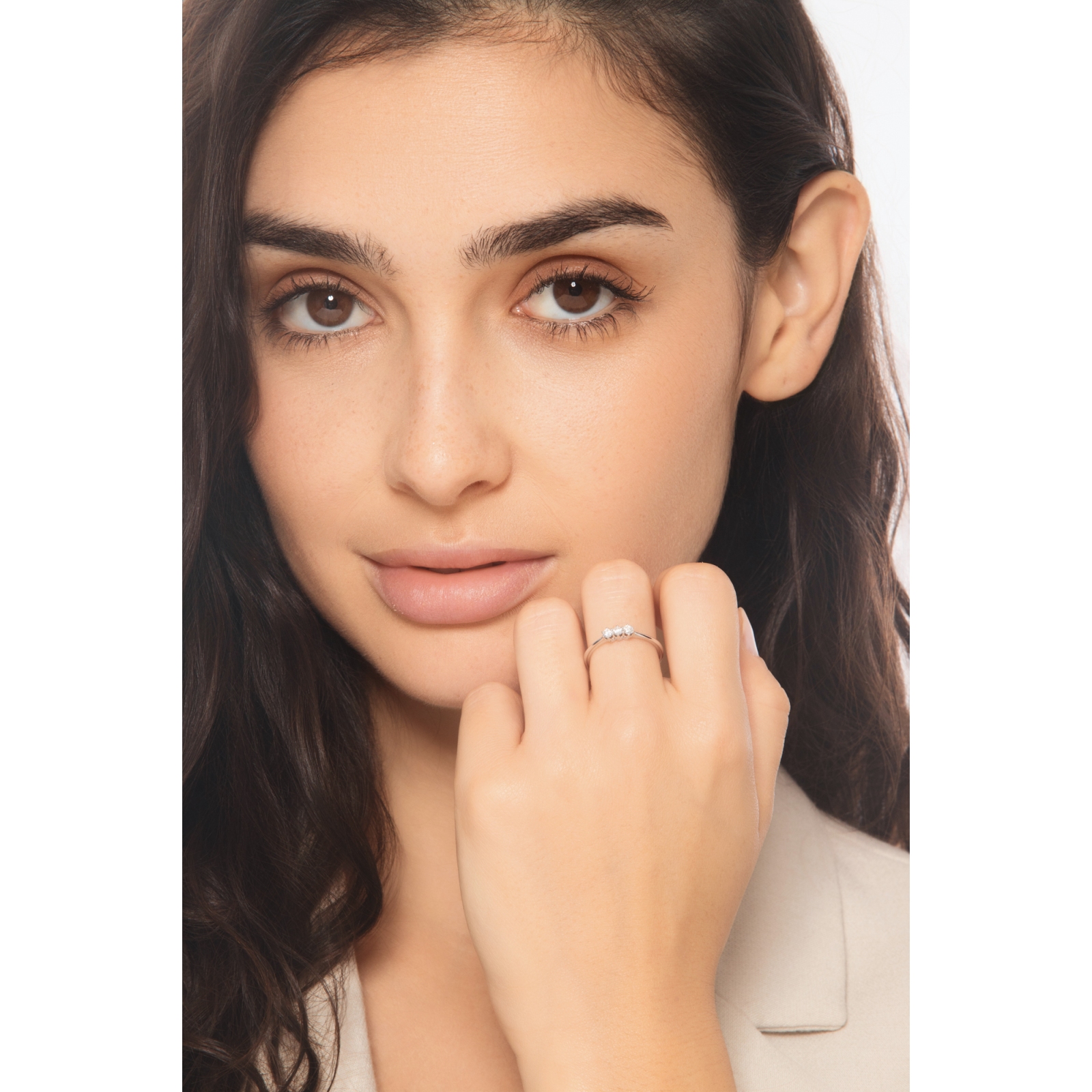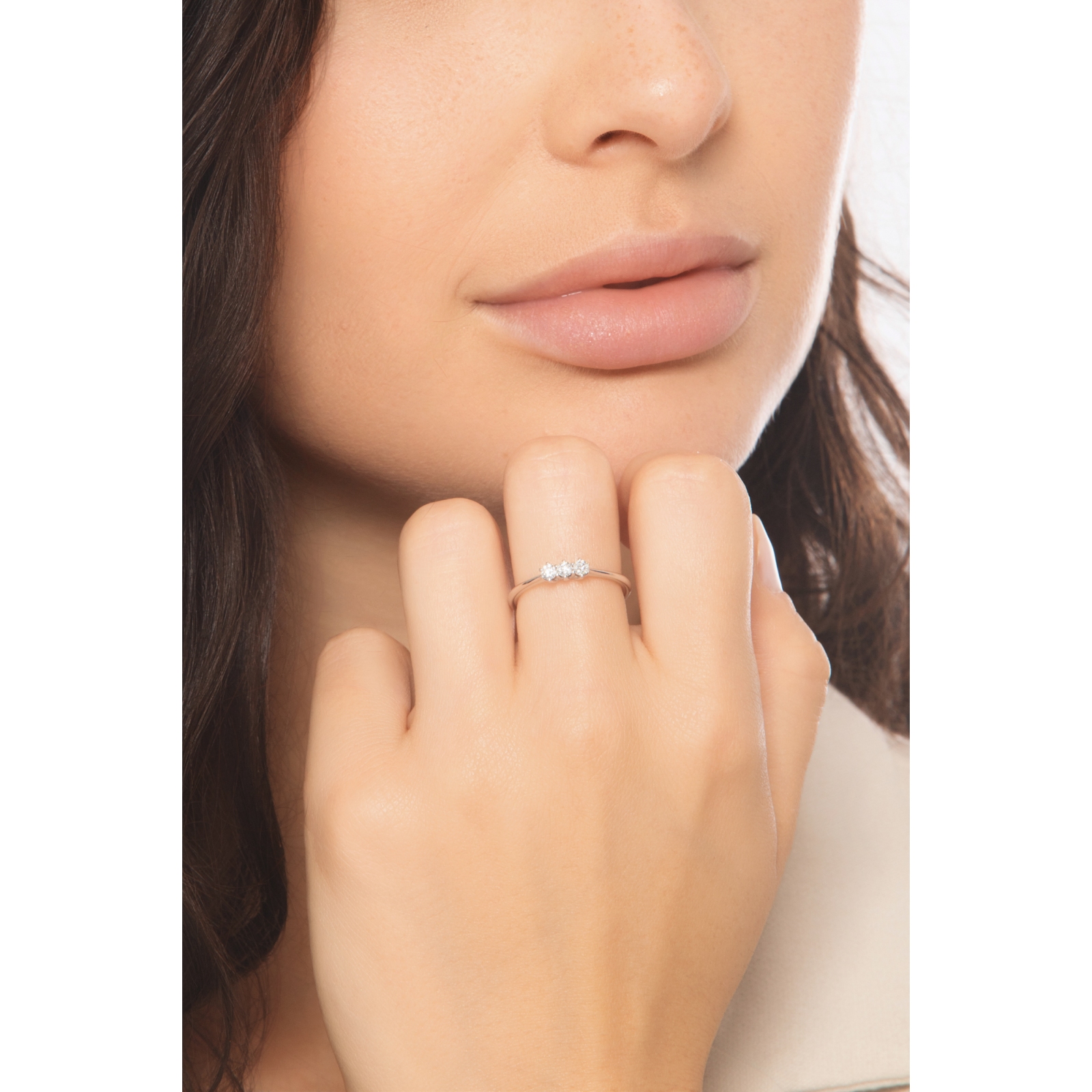 Anello trilogy in oro bianco 750 con tre diamanti
