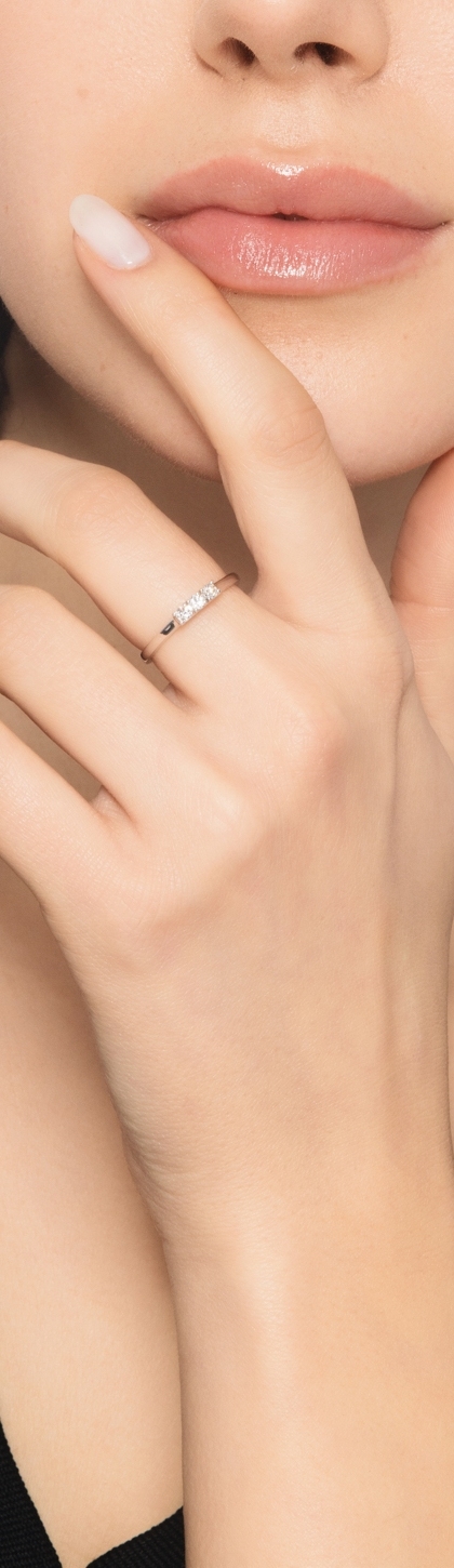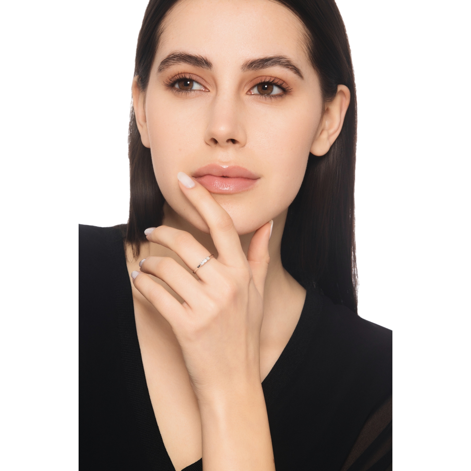Anello trilogy lineare in oro bianco 750 con diamanti, 0.15 ct