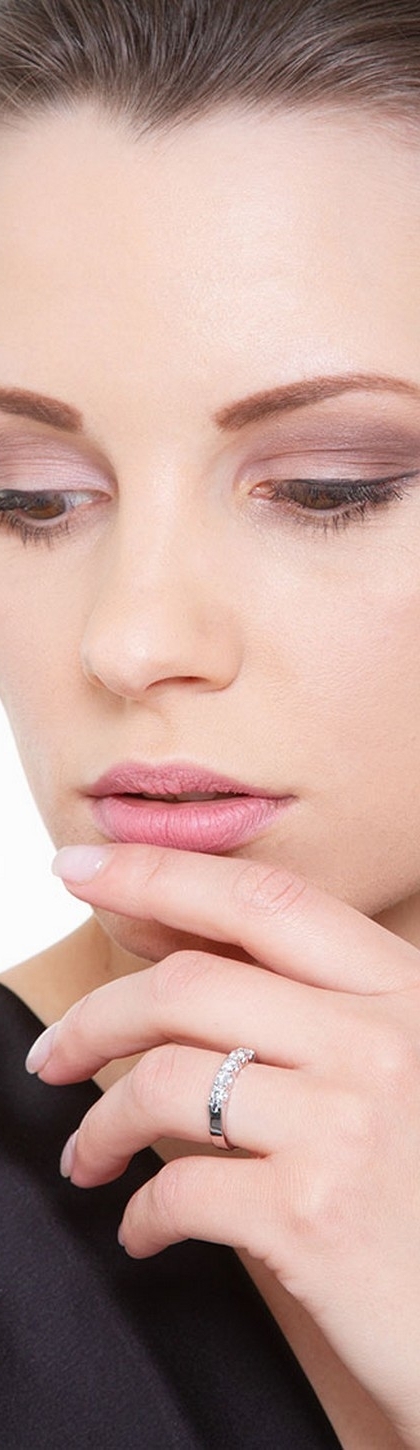 Anello Veretta a 5 pietre in Oro Bianco 18k, con incastonati diamanti colore G purezza Vs taglio brillante.