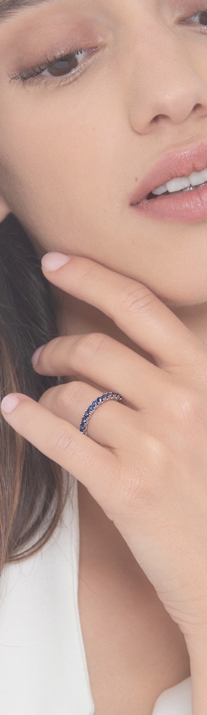 Anello fedina in oro bianco 18k con 11 zaffiri blu
