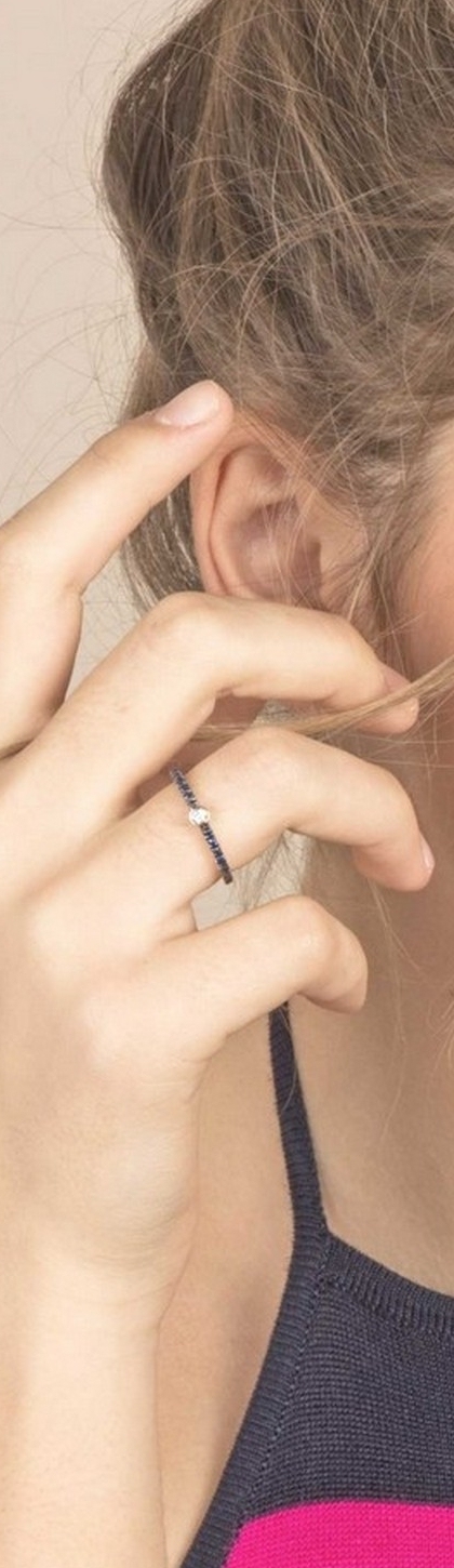 Anello Fedina in oro bianco 18k con diamante e Zaffiri blu