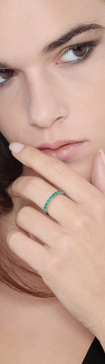Anello in oro bianco 18k con incastonati Smeraldi taglio brillante.