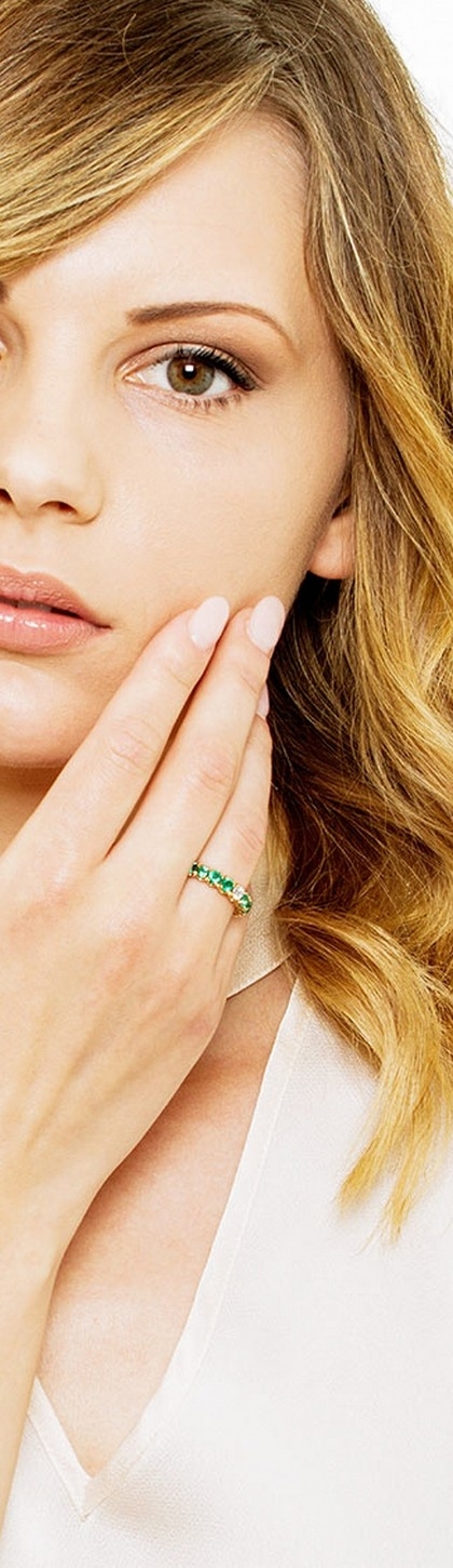 Anello in Oro Giallo 18k con diamanti e smeraldi a scalare