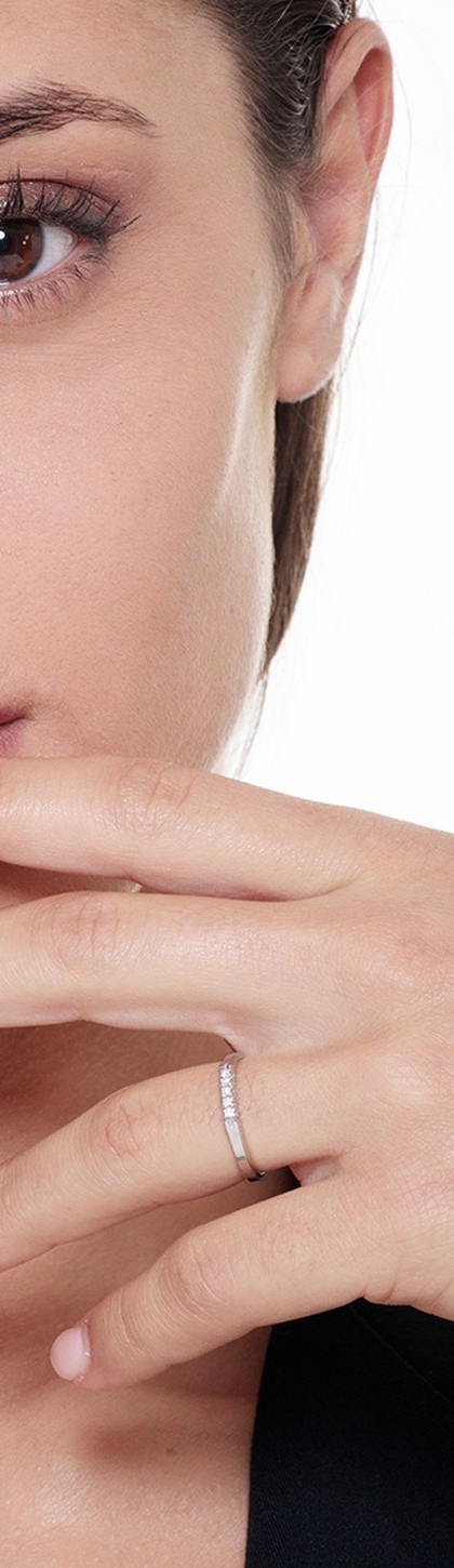 Anello Veretta a 5 pietre in Oro bianco 18k con Diamanti ct. 0,05