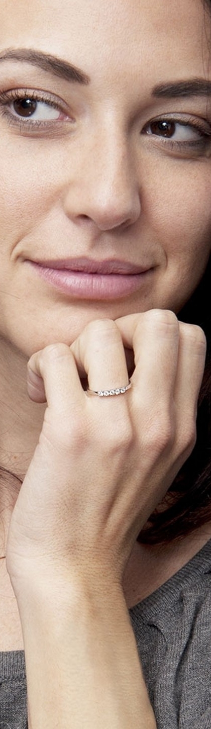 Anello Veretta a 5 pietre in Oro bianco 18k con diamanti ct. 0,15