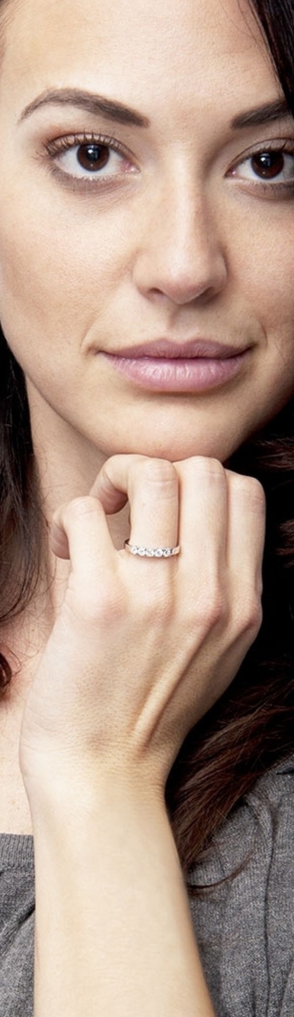 Anello Veretta a 5 pietre in Oro bianco 18k con diamanti ct. 0,35
