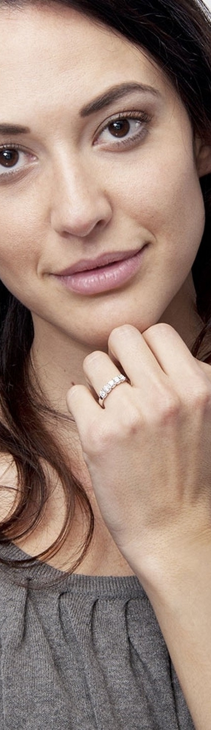 Anello Veretta a cinque pietre in Oro Bianco 18k, con incastonatura di tipo griffe e diamanti taglio brillante, colore G purezza Vs.